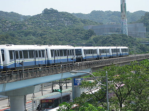 在南港展覽站 看文湖捷運的四節車廂