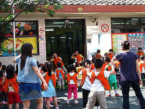 趕搭捷運路 正好看看見 幼稚園小朋友 早操