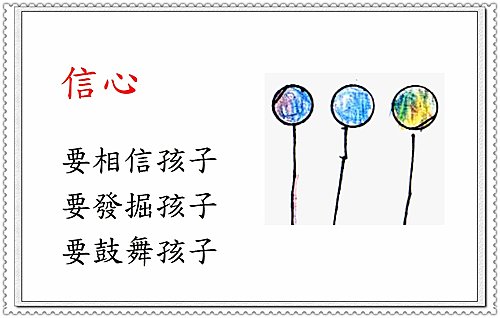 家庭 信心 發佈日期: 2010-01-27 作者: ling 父母是孩子生命的陽光 孩子依靠父母 相信父母 父母也要相信孩子的能力 發掘孩子的潛能 鼓勵孩子向前 父母給孩子信心 好比太陽照耀大地 給大地溫暖