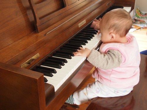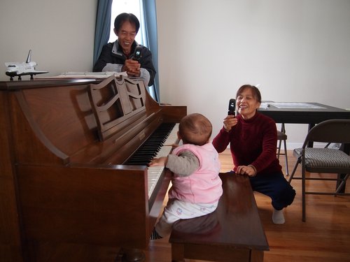 小傢伙把鋼琴當玩具 逗的外公外婆好高興