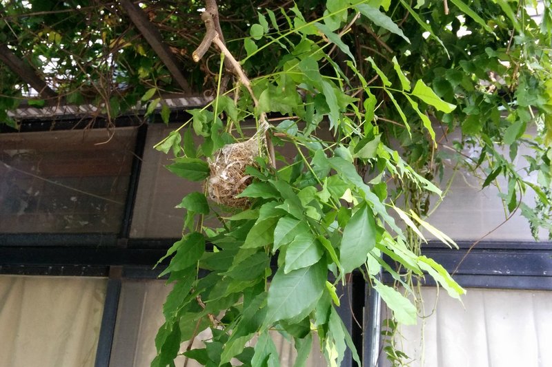 綠繡眼 發佈日期: 2015-08-16 作者: ling 紫藤花落,樹枝變得茂密, 修剪時不小心剪落綠繡眼鳥窩。 還好鳥兒沒有棄巢,讓我在家就能記錄。 老天爺對我太好了,知道我沒法出門,特地派綠繡眼到我家來做窩。