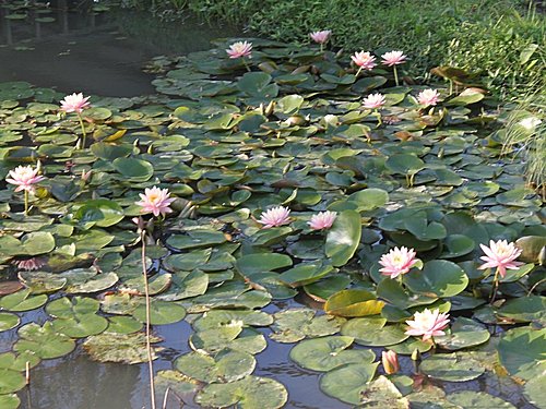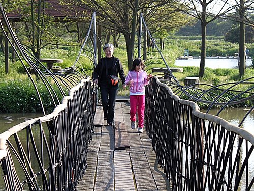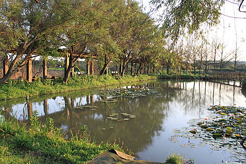 假日的黃昏和孩子 孫女遊新屋蓮園 園內草叢都沒整 園主說:五月份開始賞蓮的季節 才會開始整地