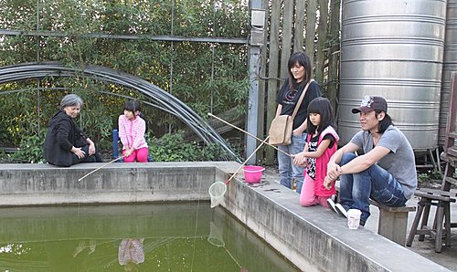 園主還介紹釣蝦 孫女玩的高興極了 回家前把釣上來的蝦子 全放回了釣蝦池