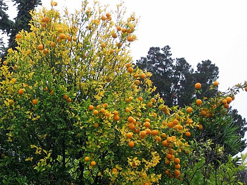 橘子和變黃的橘葉