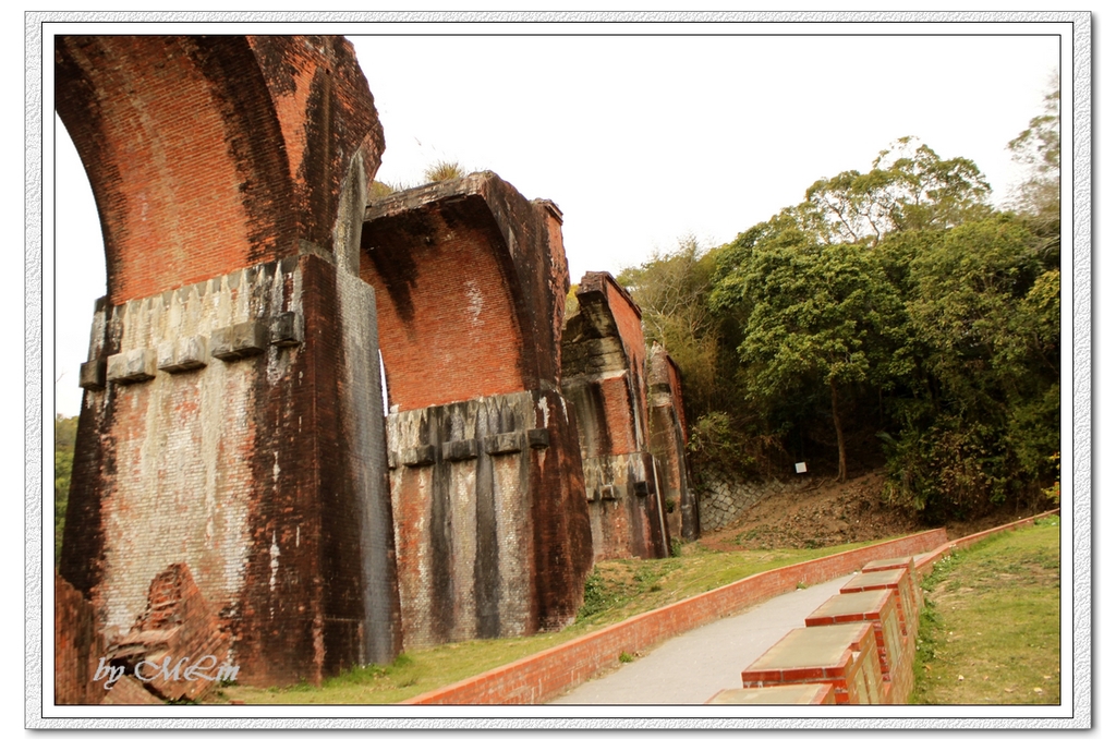 龍騰斷橋 發佈日期: 2015-03-12 作者: ling 家裏一直掛著老伴40多年前的油畫。今天終於看到了橋的本尊。 小孫女說:爺爺畫的比實景好看, 甜甜的小嘴逗的我們都開心。 龍騰斷橋在苗栗縣彎延山路上,整座橋樑以糯米砌磚, 是目前臺灣尚存的幾座糯米橋之一。也是全臺山線鐵路最高的橋樑。 經過1935年的關刀山大地震和1999年921大地震。 就成了現在這模樣。 據說,北端的六個橋墩遺跡以及南端的四個橋墩遺跡。 被譽為「臺灣鐵路藝術極品」。